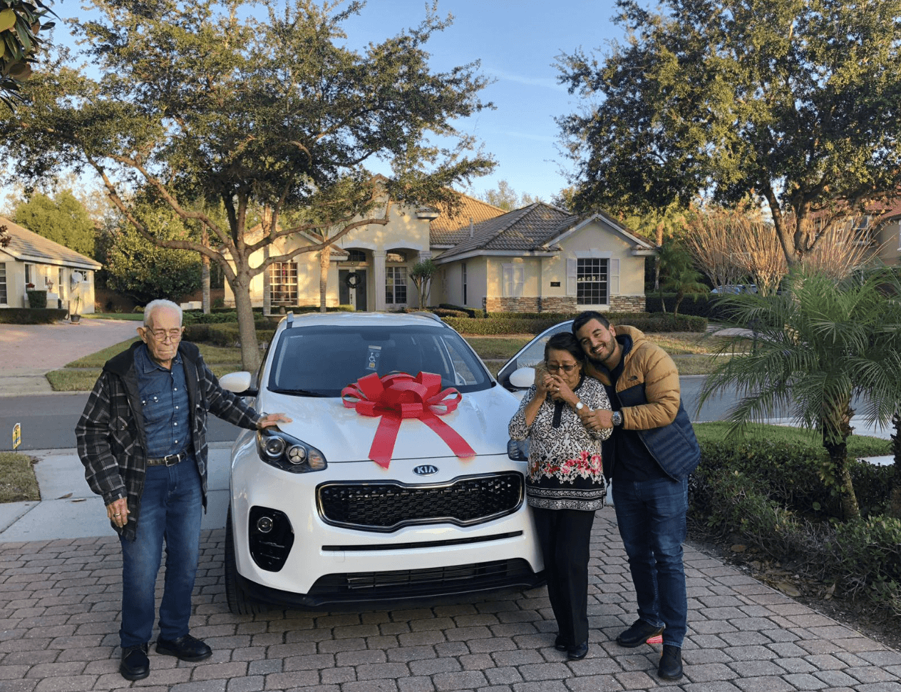Retiro a mi abuela del trabajo y le regalo un carro.